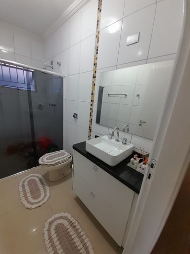 4 banheiros no total: 🛀 Três banheiros internos e um nos fundos para a sua comodidade e de seus convidados.